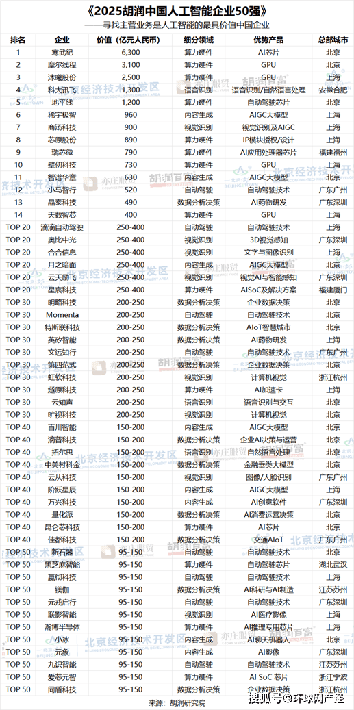 正在日常使用方面,截至2025年11月,此外,挖掘更多人工智能范畴的领兵力量,非上市公司估值参考同业业上市公司或者按照最新一轮融资环境进行估算。AI芯片企业寒武纪以6300亿元的价值位居榜首,比客岁提高35亿元人平易近币;比客岁添加4家;为全球智能时代贡献中国聪慧。以19家企业的数量领先,一线城市的企业占领了上榜企业总数的80%以上,上榜门槛为95亿元人平易近币,